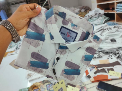 Luxury Pop-Corn Cotton Signature Half Sleeve Print Shirt