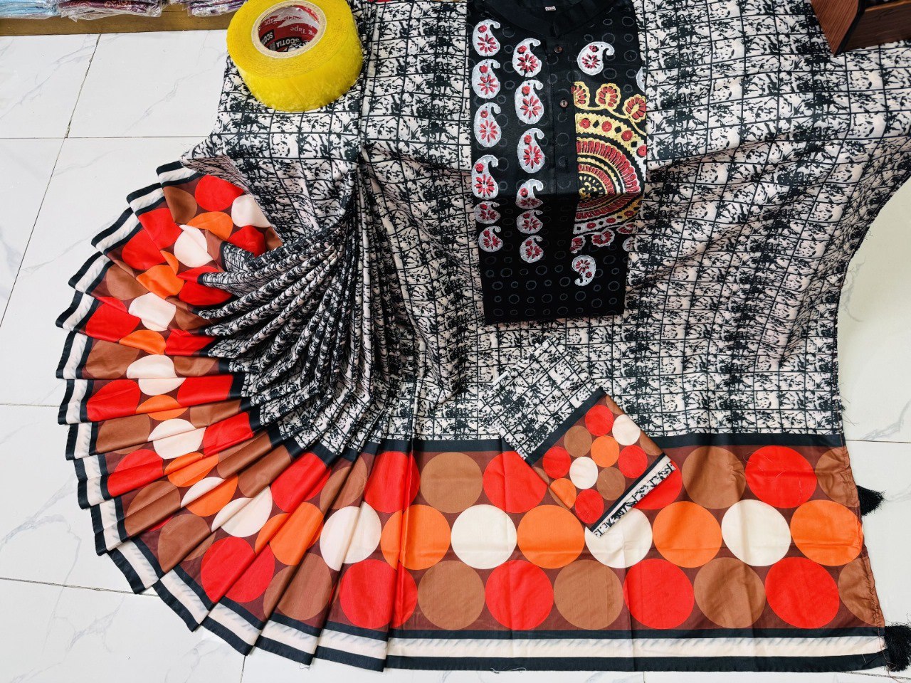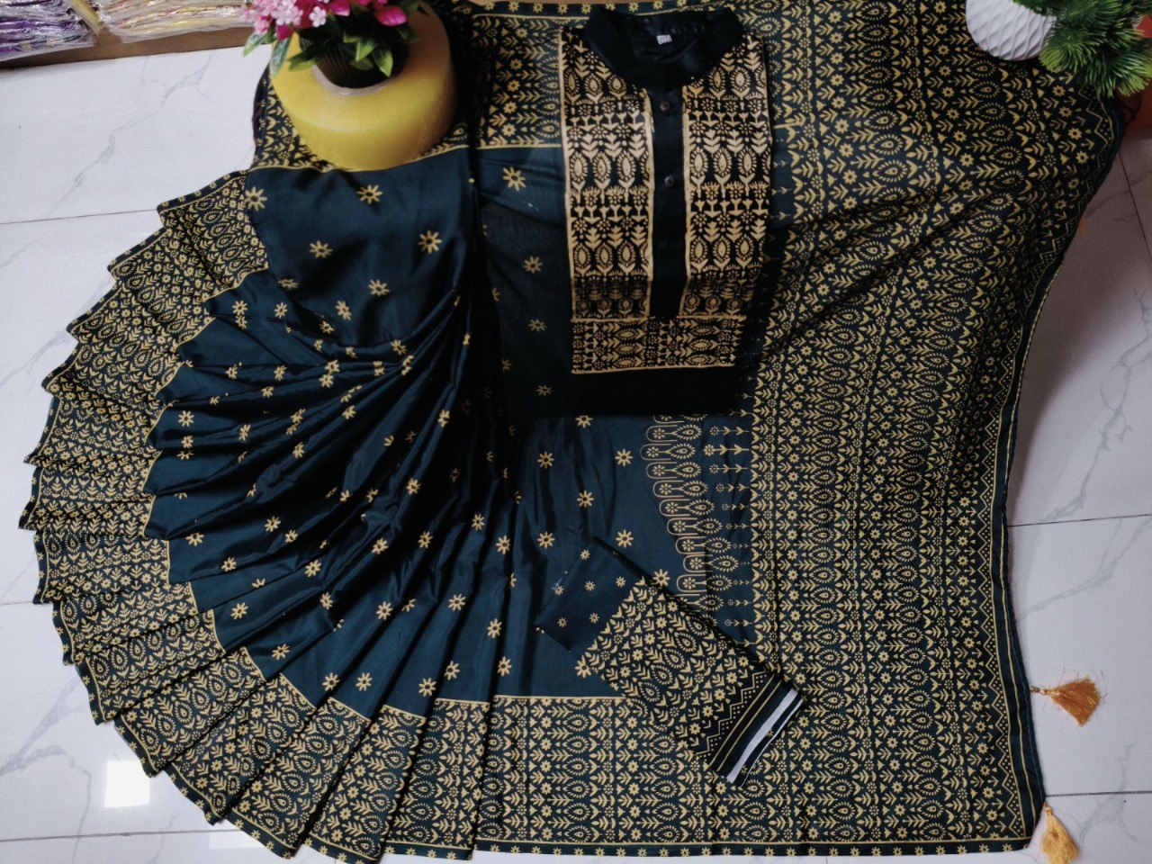 Digital Print কাজ + আড়ম্বরপূর্ণ Tarsel আঁচল