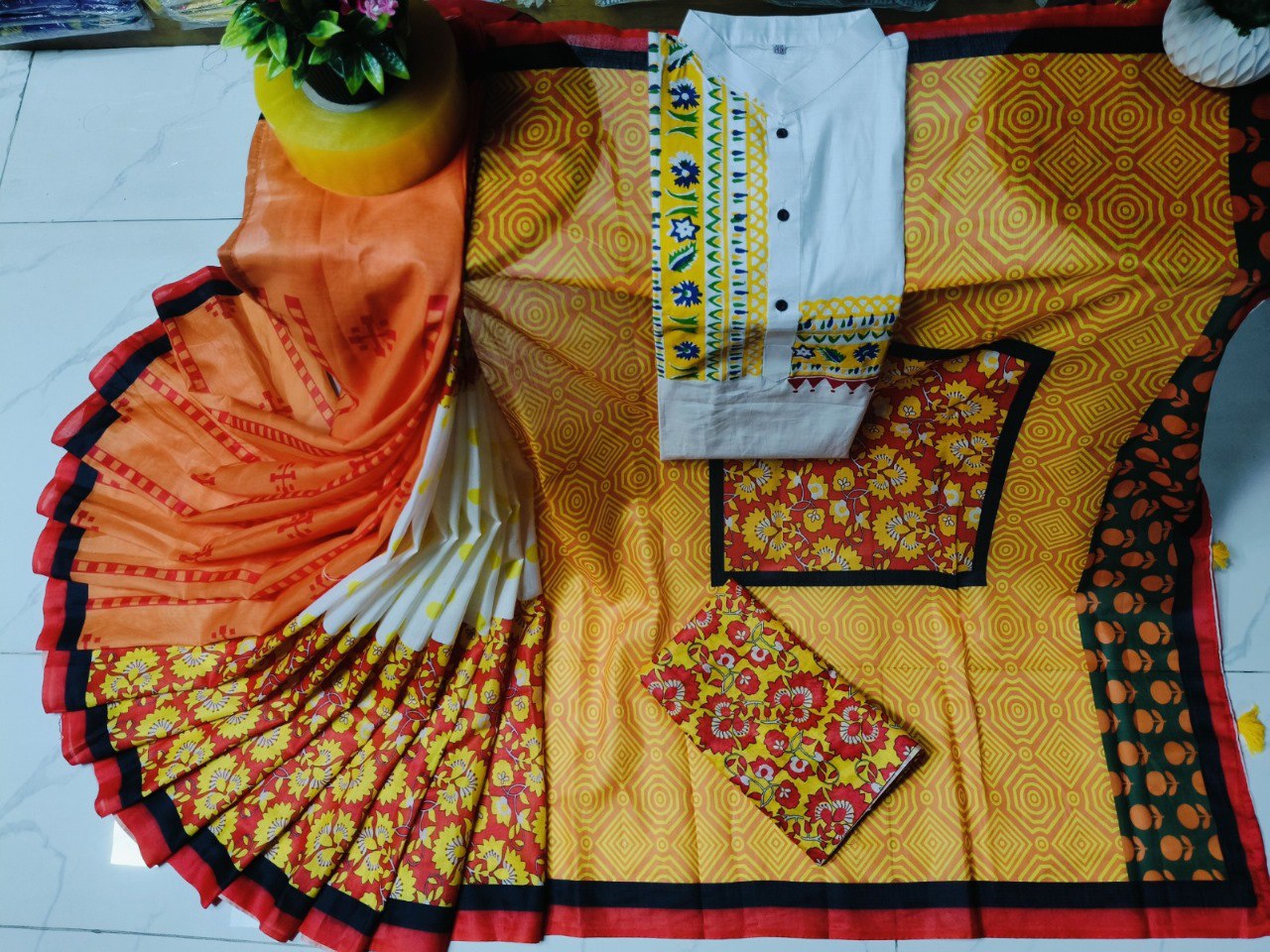 Includes matching blouse piece